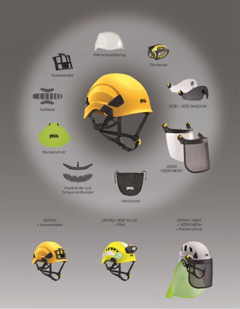 «Wir wissen, dass jede Branche einzigartige Bedürfnisse hat. Um diesen individuellen Anforderungen unserer Kunden gerecht zu werden, bieten wir eine grosse Auswahl an Zubehör und Anpassungsmöglichkeiten für unsere Helme», erklärt Julia Chemin, Produkt Manager Petzl, die Strategie, Gesamtlösungen statt Einzelprodukte anzubieten. Modularität zeichnet die Spitzenmodelle Vertex und Strato aus und erlaubt es, den Helm situativ und schnell an jede Arbeitssituation anzupassen. Zum Beispiel mit der Möglichkeit, eine Petzl-Stirnlampe, ein schützendes Visier, einen standardmässigen Gehörschutz und anderes Zubehör zu integrieren.