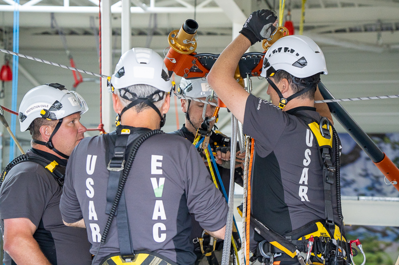 Genau deshalb stehen Patrice und die anderen Instruktoren bei Altimum Formation SA jeden Tag auf. Für sie ist es mehr als nur ein Job. Es ist ihr Ziel, dass Leute, die zu ihnen kommen, bestmöglich ausgebildet werden. Damit nicht nur die zu rettenden Personen in guten Händen sind, sondern die Rettungskräfte selbst sicher im Team arbeiten können. Die Leute schätzen den Einsatz von Patrice. Denn obschon der Kurs offiziell bis 17:00 Uhr dauert, so bleiben alle vier noch freiwillig länger, um einige Übungen zu absolvieren und an individuellen Themen zu arbeiten. Patrice kann sich indes das Zufriedenheitslächeln nicht verkneifen und meint: «Wenn morgen alles klappt und sie ihre Zertifizierung erreichen, dann sehen wir uns wohl in drei Jahren wieder.» Spätestens dann müssen die vier einen Refresher-Tag absolvieren, so wie das auch bei den Industriekletterern der Fall ist.